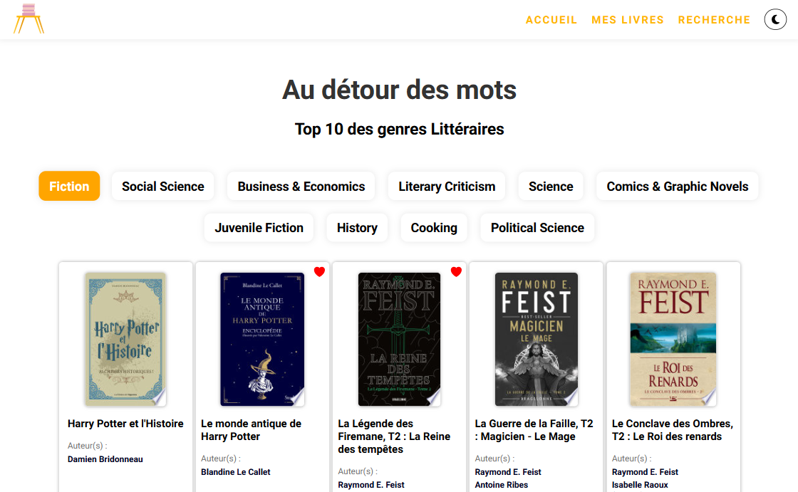 Création d'une application pour trouver et ajouter des livres à sa bibliothèque. Ce projet utilise une API externe, il n'y a pas de back end, les préférences sont stockées dans le local storage. Un dark mode est disponible.